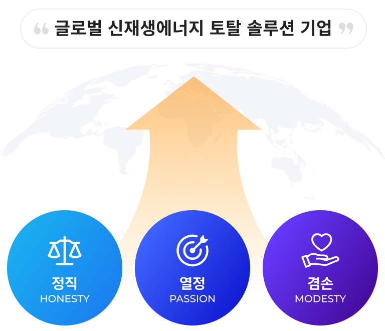 투명하고 정직한 경영관리로 신재생에너지 사업 발전과 국가경제 발전에 기하기 위하여 최선을 다하겠습니다.